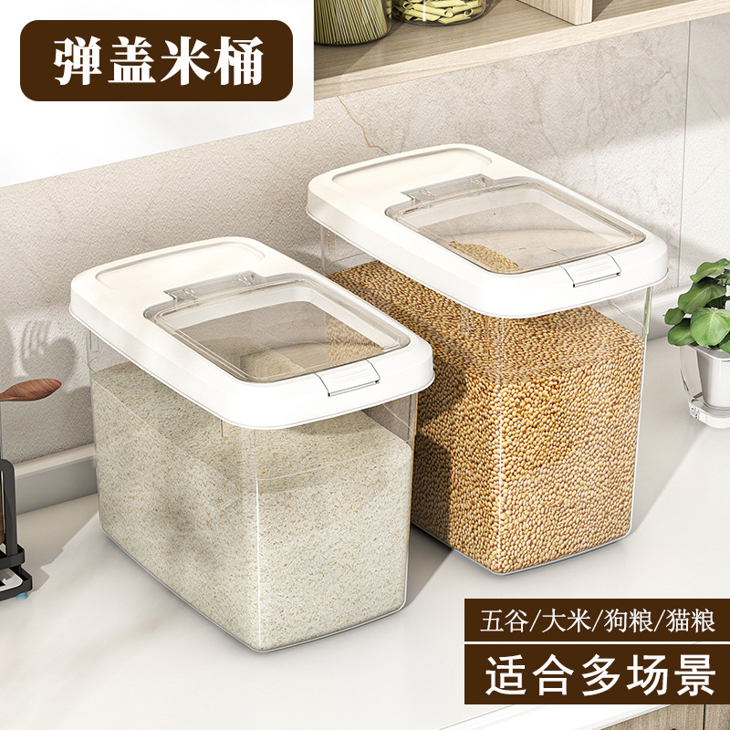 Ember beras baru, anti serangga, anti lembap, wadah beras kedap udara, tepung beras, makanan kucing, kotak penyimpanan makanan anjing, kotak penyimpanan beras rumah tangga