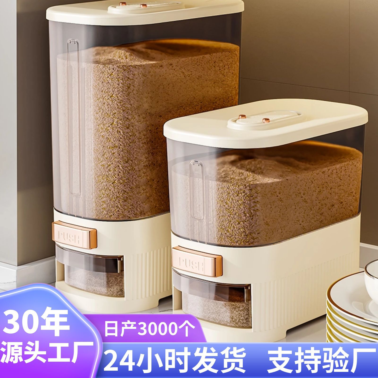 Ember nasi tekan rumah tangga kapasitas besar, biji-bijian kasar makanan kucing dapat dapur satu klik penyegel otomatis kotak penyimpanan nasi multifungsi