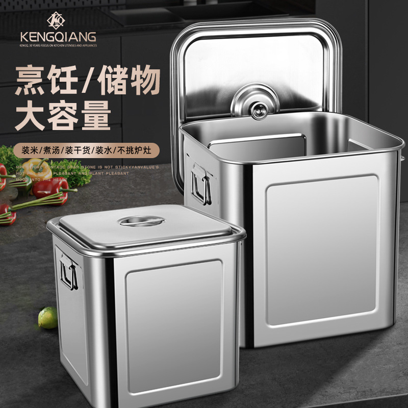 Ember Stainless Steel Stainless Steel Food Ember Empat Arah Ember Beras Ember Penyimpanan Gabah Tahan Air dan Serangga Dapur Rumah Tangga Ember Saus Komersial