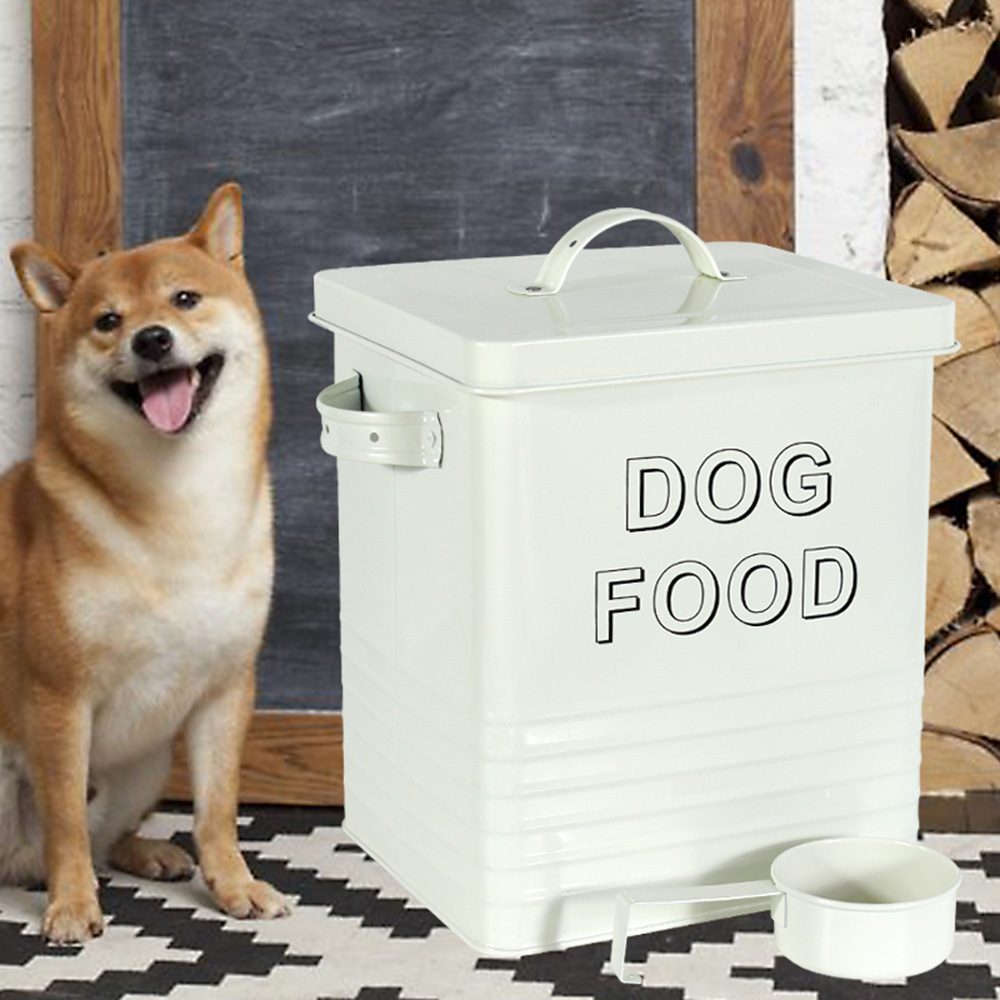 Beli pabrik Amazon disegel makanan anjing ember penyimpanan gandum besi kaleng tertutup tahan kelembaban makanan hewan peliharaan ember dengan sendok