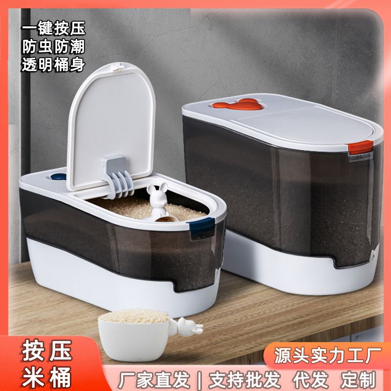 Ember beras, anti serangga, anti kelembaban, kedap air, toples penyimpanan dapur, makanan rumah tangga, tertutup, makanan anjing, kucing, kelas makanan