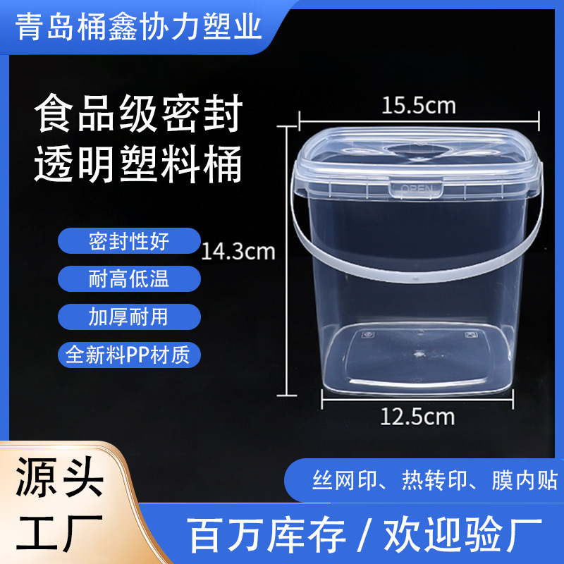 Pabrik Grosir Banyak Spesifikasi Portabel dengan Penutup Transparan Ember Persegi Cuci Manik-manik Gelap Makanan Anjing Ember Kemasan Buah