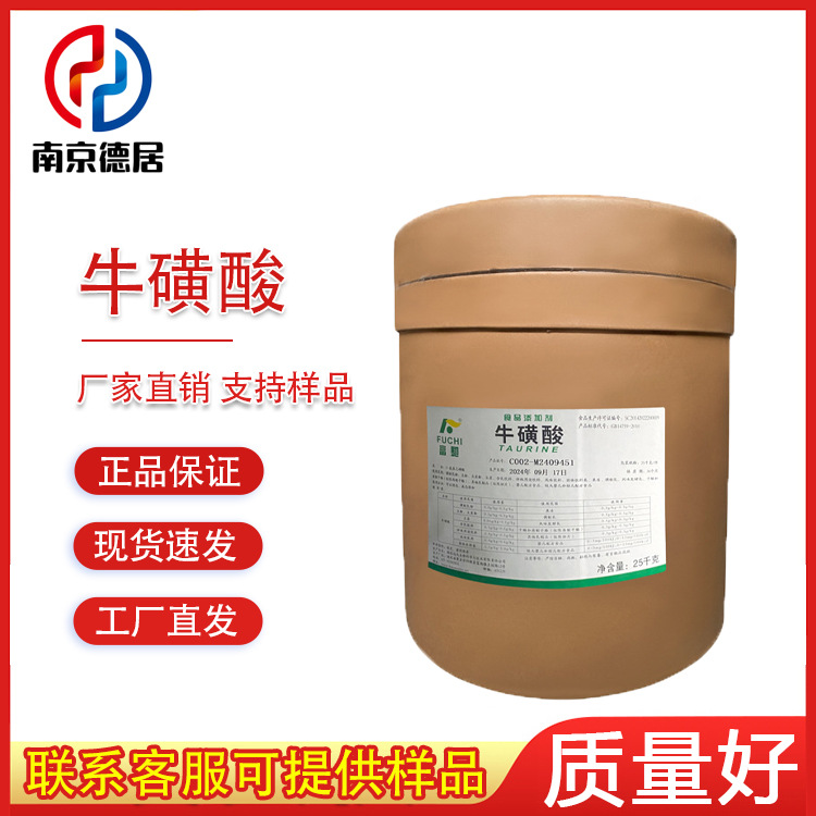 Taurin food grade 25kg dalam kemasan barel, asam aminoasetat, bahan baku asam amino untuk minuman dan makanan kucing taurin