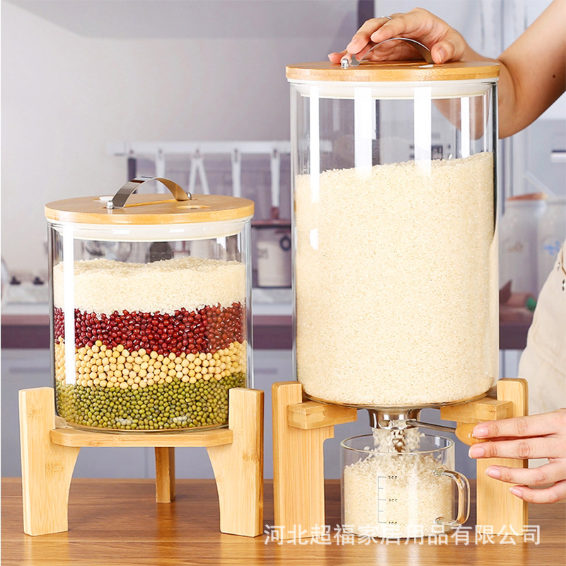 Barel Beras Meteran Kaca Borosilikat Tinggi Kotak Penyimpanan Beras Silinder Beras Ukuran Besar Anti lembab Anti Serangga Alas Penyimpanan Serangga