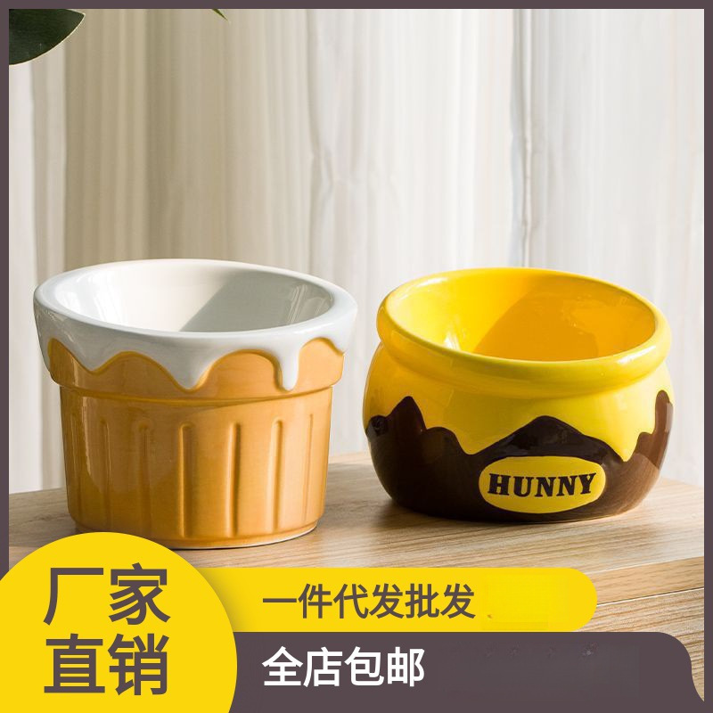 Mangkuk Kucing Mangkuk Keramik Mangkuk Anjing Kaki Tinggi Anti-Baling Mulut Imut Mangkuk Air Minum Mangkuk Madu Mangkuk Keramik Mangkuk Makanan Kucing Gratis Ongkir