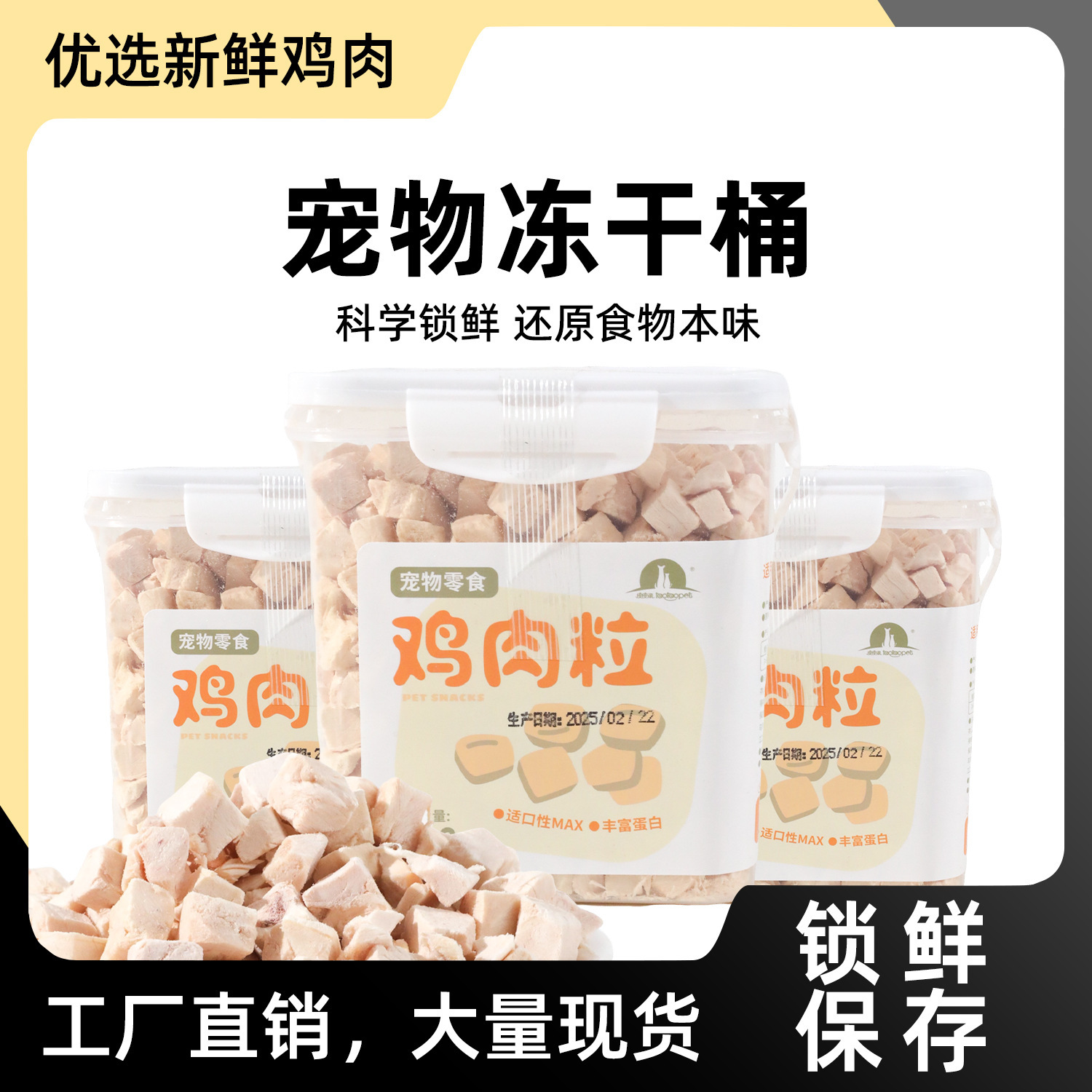 Makanan Ringan Kucing Kering Beku Lemak Ayam Dada Ayam Hewan Peliharaan Anjing Makanan Kucing Rumah Ember Makanan Ringan Sumber Pabrik Grosir