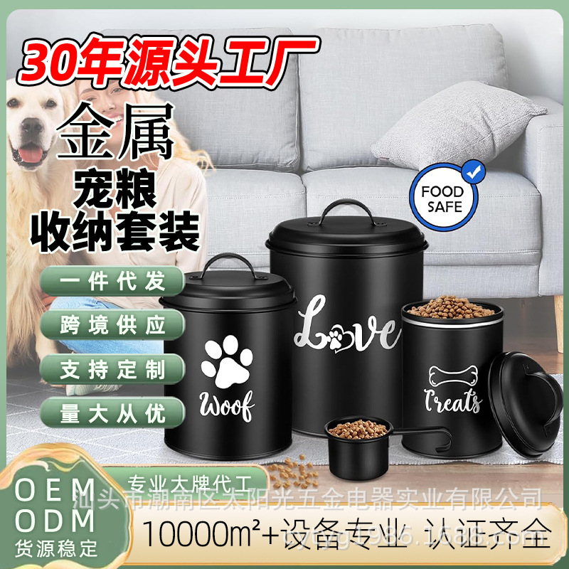 Sumber pabrik makanan anjing kucing ember makanan hewan peliharaan besi stoples penyimpanan tertutup pet jar penyimpanan dapur