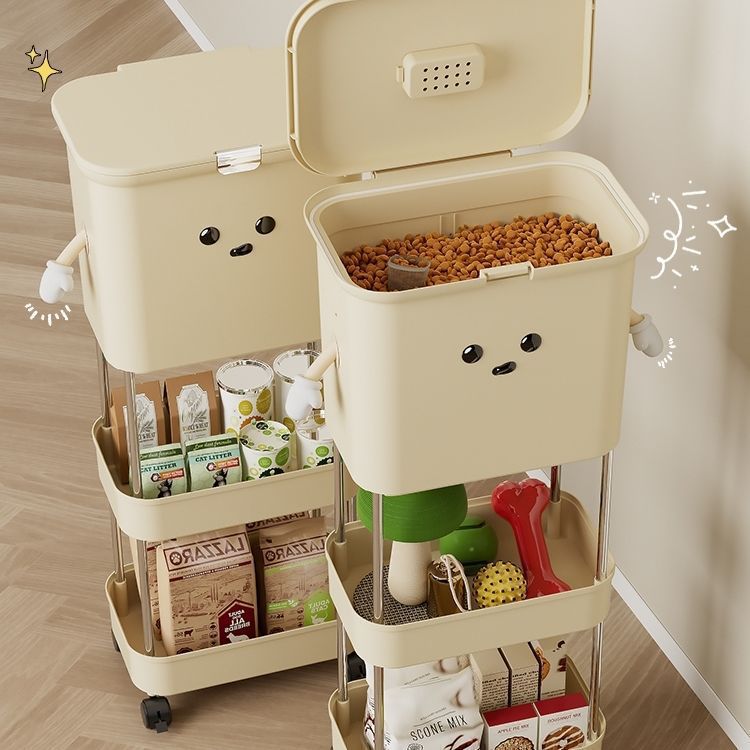 Kotak Penyimpanan Makanan Hewan Peliharaan Kotak Penyimpanan Makanan Kucing Kotak Penyimpanan Makanan Anjing Kotak Penyimpanan Tahan Trendi Rak Penyimpanan Mainan Kaleng Dua Lapis