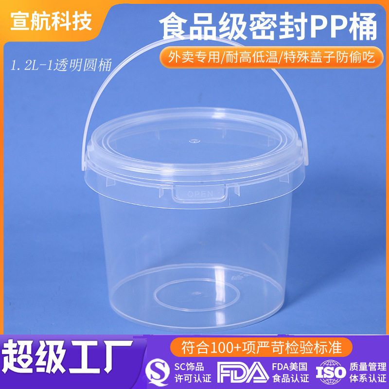 Ember plastik transparan Pp mulut lebar kelas makanan 0.3/5L sekali pakai portabel disegel es bubuk teh susu ember makanan kucing