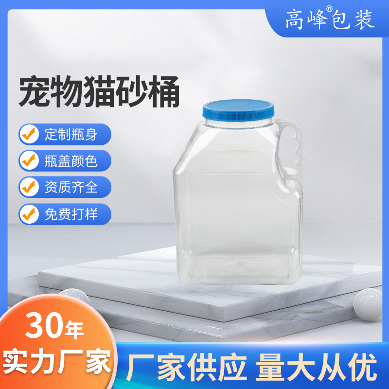 Ember sampah kucing hewan peliharaan plastik 10kg botol gandum kucing plastik portabel produsen Shandong botol RPET kustom