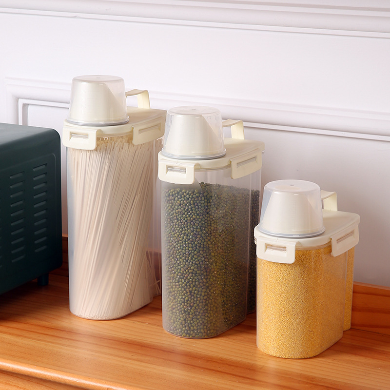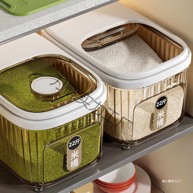Penutup geser ember beras, toples beras tingkat makanan, kotak penyimpanan gandum tersegel, tahan kelembapan, anti serangga, rumah tangga
