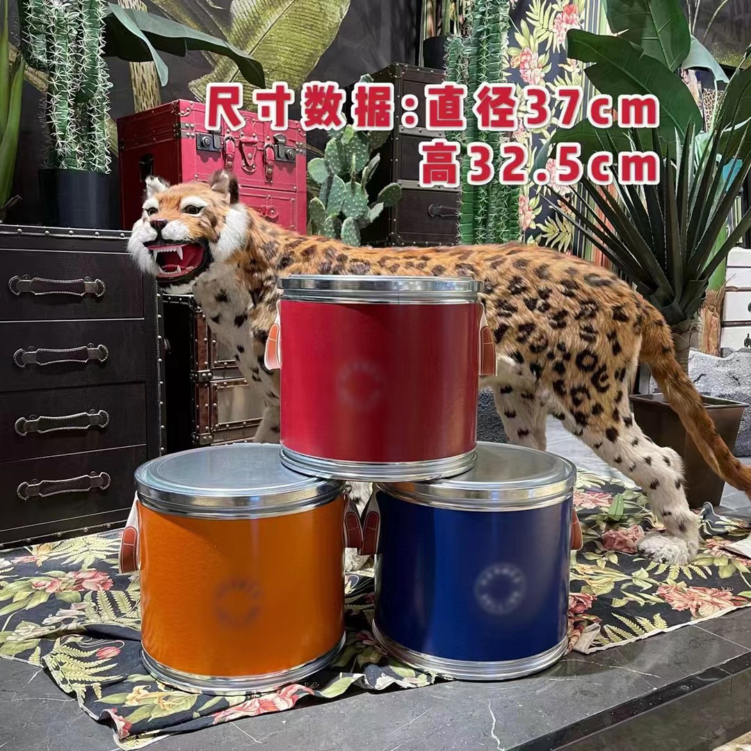 H rumah sederhana ember penyimpanan ember merah oranye biru penyimpanan gandum ember pendek bangku penyimpanan dekorasi ruang tamu