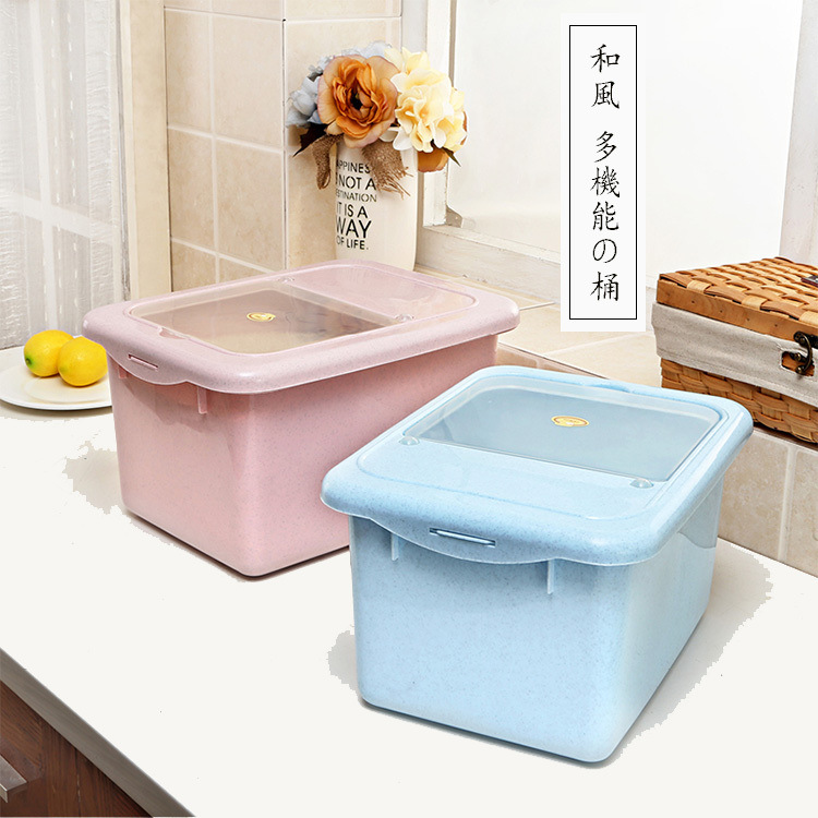 Kotak Penyimpanan Beras Tersegel Tahan Lembab Plastik Gaya Jepang Kapasitas Besar Makanan Kucing Makanan Anjing Tepung Beras Aneka Biji-bijian Ember Beras