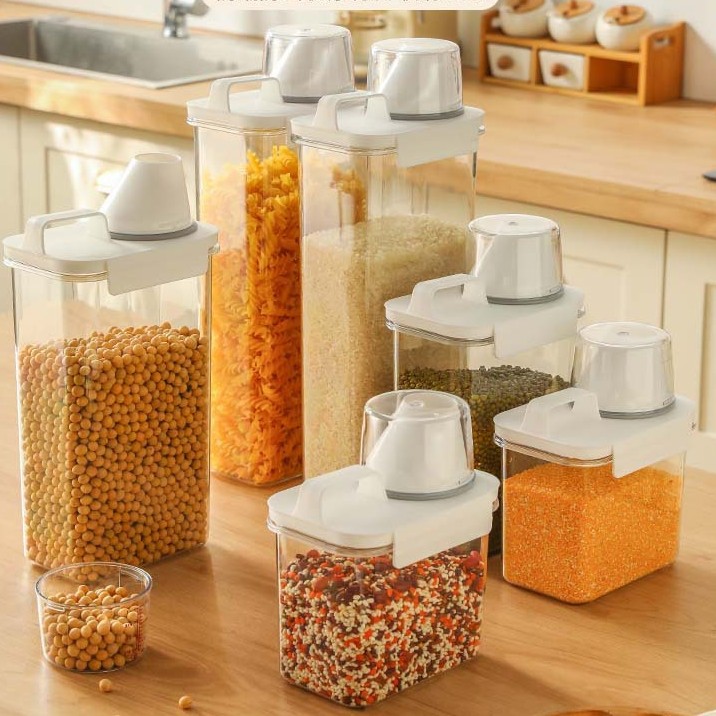 Toples beras, makanan ringan, barang kering, anti kelembaban, toples plastik tertutup, penyimpan makanan, wadah makanan dapur