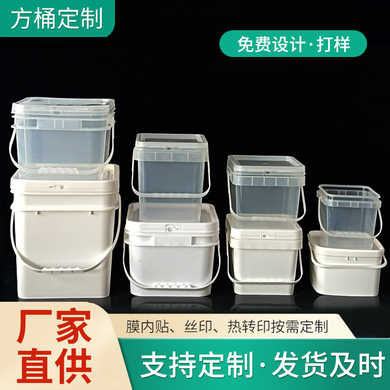 Ember plastik food-grade custom 5L ember persegi ember makanan kucing beku-kering ember pasir kucing 5kg ember penyimpanan transparan kedap udara grosir