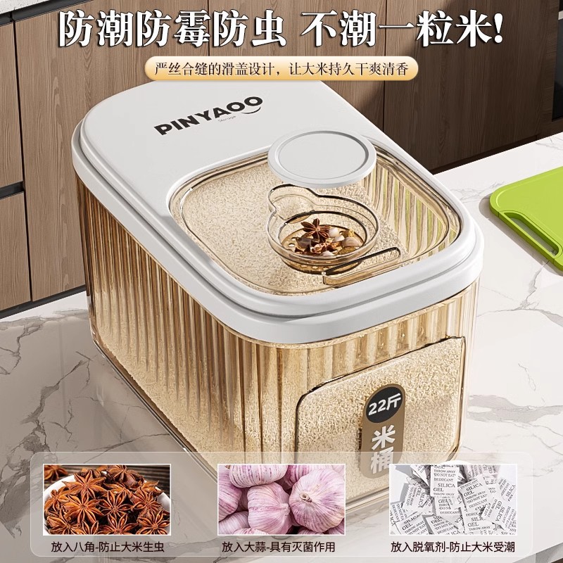 Ember beras, ember beras, anti serangga, anti kelembaban, kotak penyimpanan dapur, ember nasi, kotak penyimpanan gandum, tepung, rumah tangga