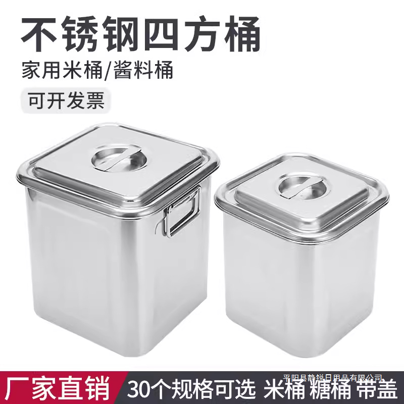Ember Beras Ember Persegi Baja Tahan Karat Ember Persegi dengan Penutup Ekstra Tebal Tahan Air Anti Serangga Silinder Penyimpanan Segel Rumah Tangga Persegi