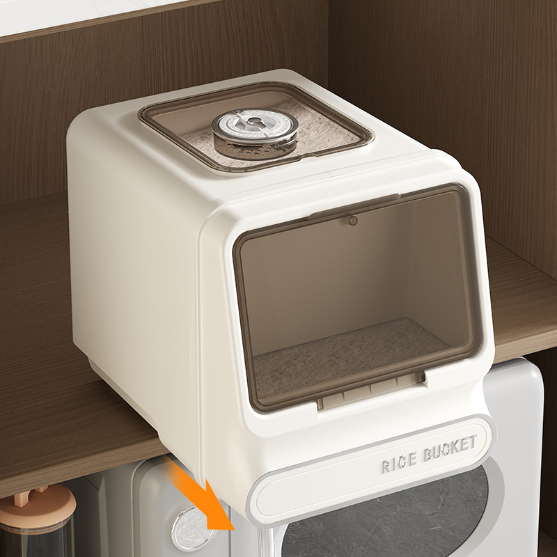 Kotak penyimpan beras, tipe dorong otomatis mengukur beras rumah tangga dengan serangga, tahan air 20kg, kotak penyimpanan gandum