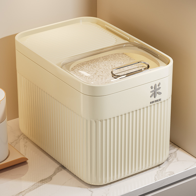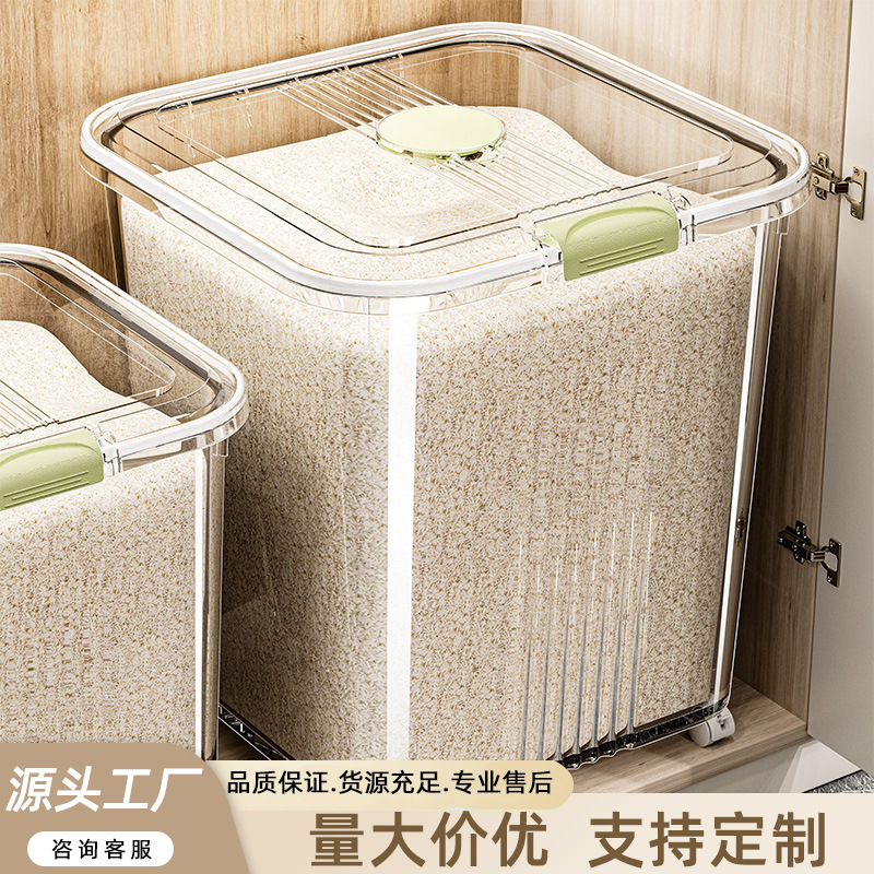 Ember beras desain sendiri, rumah tangga anti serangga, anti lembab, kotak nasi tersegel, penyimpanan tepung beras, panci dapur multi-grain