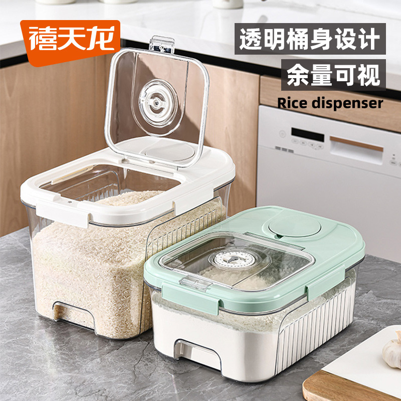 Deko ember beras rumah tangga, ember beras, kotak penyimpanan biji-bijian, kotak beras, anti serangga, rumah tangga, tangki penyimpanan tepung