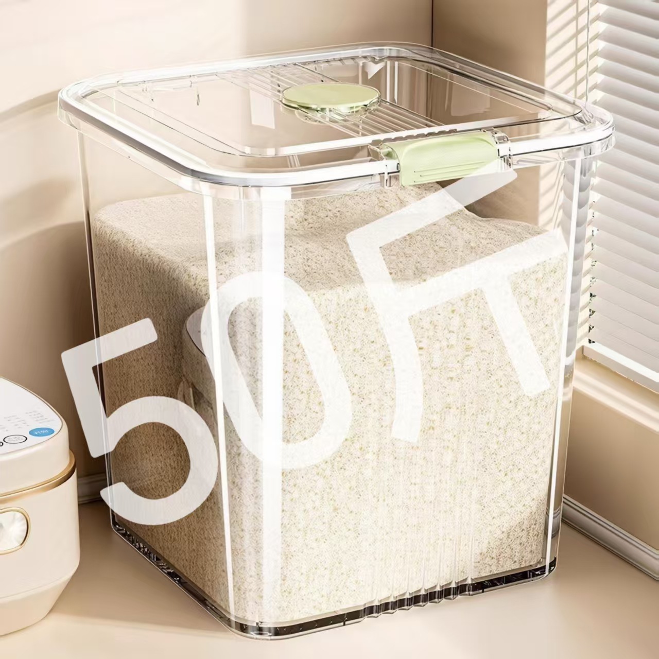 Tangki Beras Kapasitas Super Besar Tangki Beras Tertutup Anti Serangga Transparan Tangki Beras Rumah Tangga Kotak Penyimpanan Sereal Tepung Beras Rumah Tangga Tangki Penyimpanan