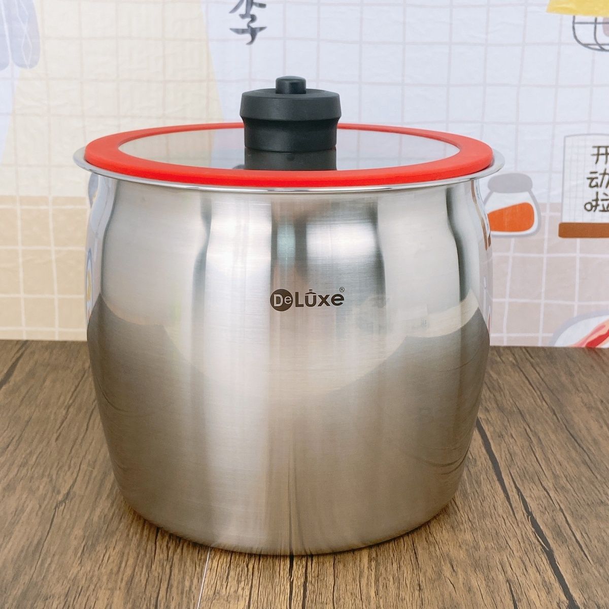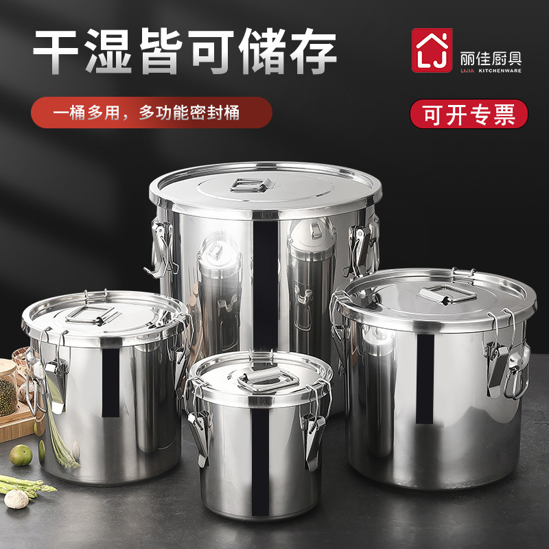 304 stoples teh baja tahan karat bersegel, toples baja tahan karat dipertebal anti lembab anti-overflow nasi ember penyimpanan hotel ember anggur komersial