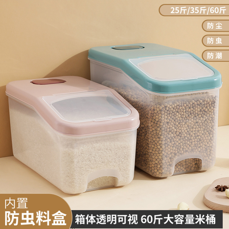 Ember beras pengiriman satu bagian, kotak penyimpanan beras, kotak beras, wadah beras diperbesar, anti serangga, rumah tangga