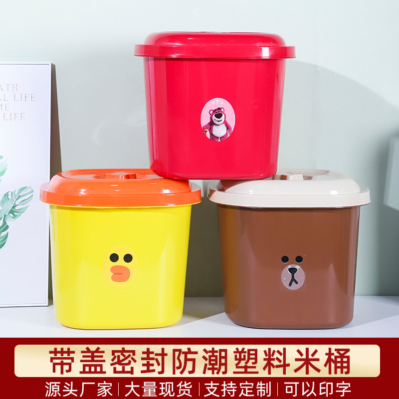 Ember Beras Beruang Strawberry Kartun Warna-Warni Plastik Tebal Ember Beras Ukuran Ekstra Besar Tangki Beras Kapasitas Besar Anti Cacing Anti Air