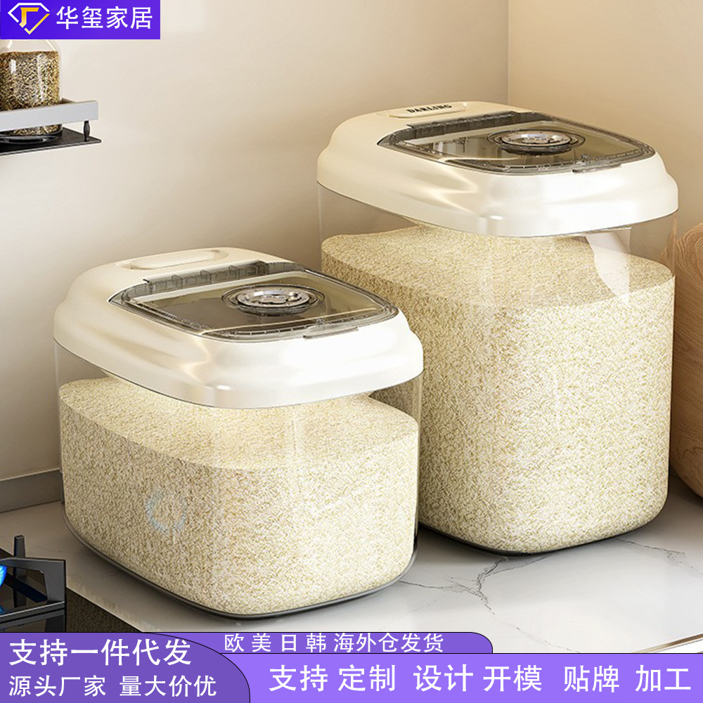 Ember beras lintas batas, panci beras rumah tangga, pengukur baru, anti serangga, anti lembap, kotak penyimpanan nasi otomatis