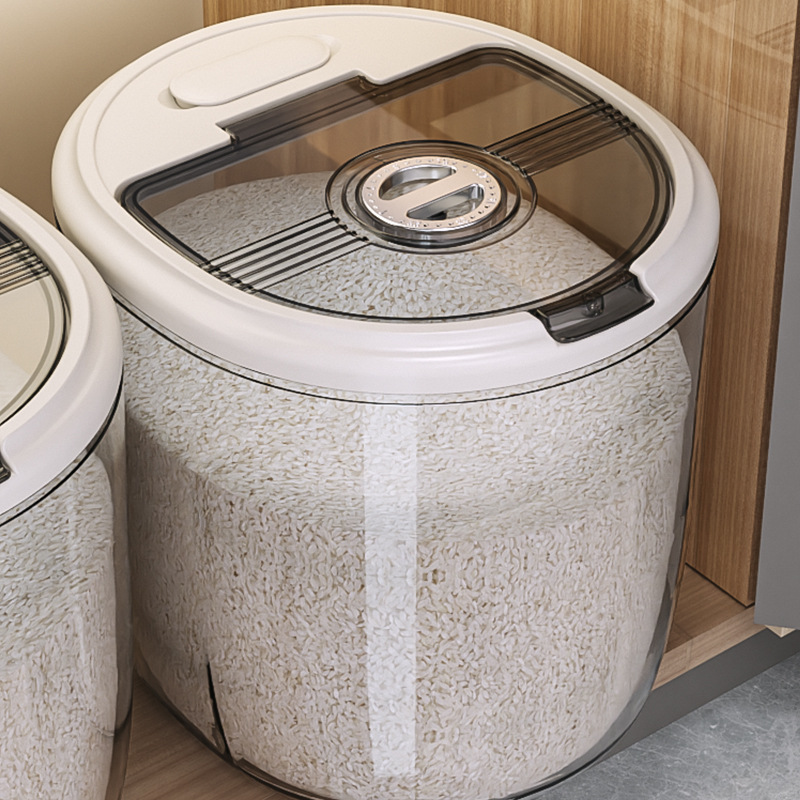 Barel Beras Rumah Tangga Bulat Anti Serangga Anti Kelelahan Dapur Transparan Segel Terlihat Terlihat Kotak Penyimpanan Beras Kapasitas Besar Kotak Penyimpanan Beras Silinder