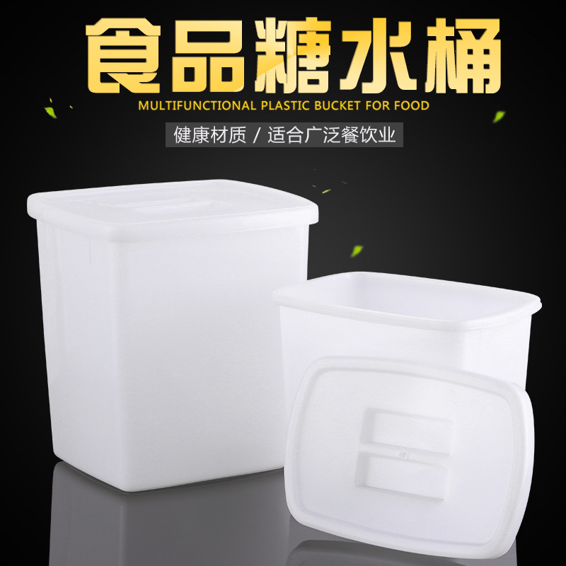 Ember gula dengan tutup plastik, Penyimpanan persegi plastik, bubur susu, makanan, minuman dingin, ember es persegi putih dingin