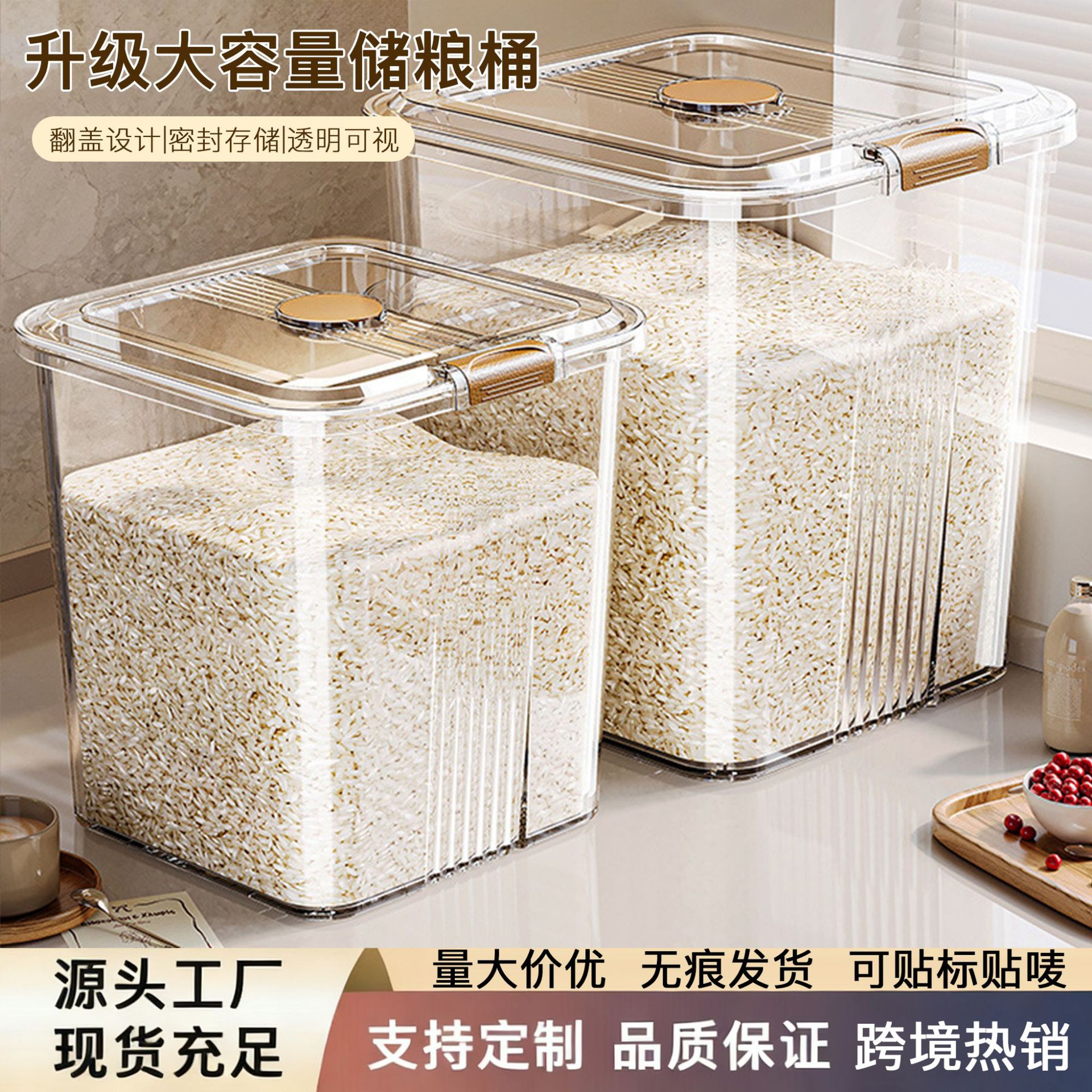 2025 Barel Beras Rumah Tangga Anti Serangga Anti Trematik Segel Tingkat Makanan Penutup Otomatis Kotak Beras Kotak Penyimpanan Tepung Beras