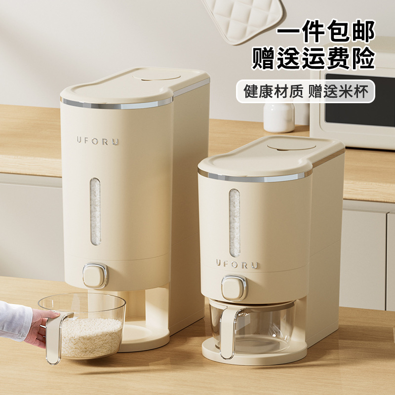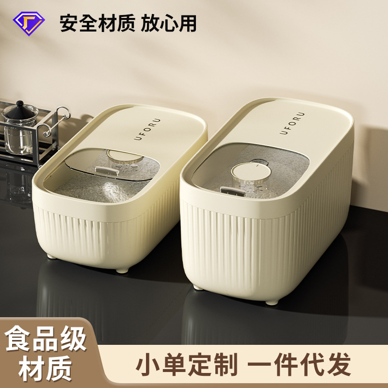 Uforu ember beras 20kg, kotak ember nasi dapur rumah tangga tersegel anti serangga grid menekan kotak
