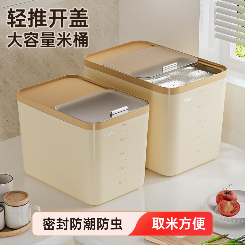 Ember beras tipe tekan food-grade, anti serangga, anti lembap, wadah penyimpanan beras dapur rumah tangga yang tertutup rapat, kotak beras plastik besar.