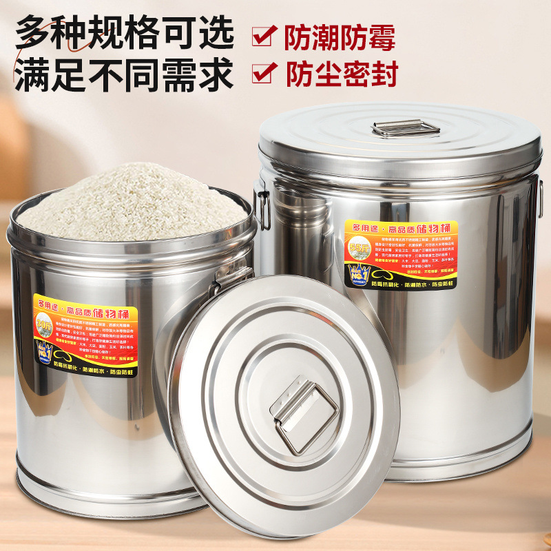 Tangki Penyimpanan Biji-Bijian Rumah Tangga Ember Tersegel Tangki Beras Baja Tahan Air Tahan Air Tahan Air Kapasitas Besar