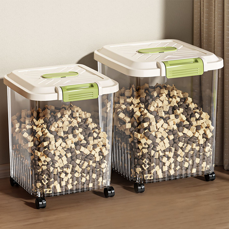 Kotak penyimpanan makanan hewan peliharaan, ember biji-bijian transparan, anti kelembaban, toples penyimpanan tepung bersegel, kotak makanan anjing peliharaan
