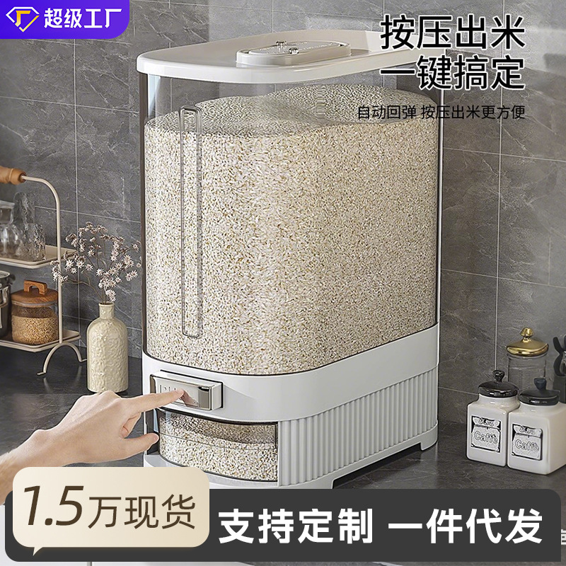 Uforu ember beras, 20 tingkat makanan rumah tangga, anti-serangga, anti lembab, tekan, otomatis besar, penyegel beras, kotak