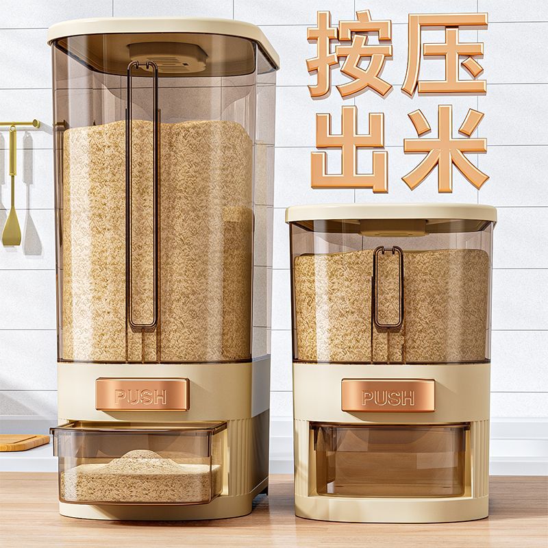 Ember Beras Tekan 20Kg Silinder Beras Kelas Makanan Anti Debu dan Anti Trendi Segel Rumah Tangga Ember Beras Tipe Tekan Kapasitas Besar Dapur