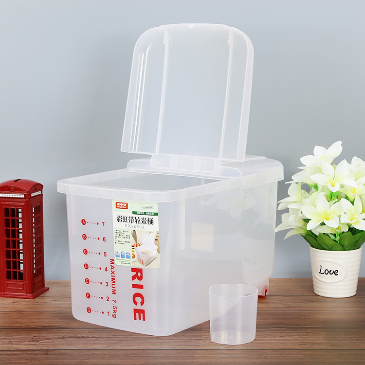 Kangyi ember beras dengan roda rumah tangga 15 Jin 20 Jin kotak penyimpanan nasi dapur kotak plastik penyimpanan gandum lipat