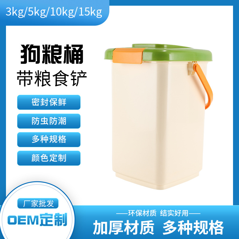 Wadah penyimpanan makanan hewan peliharaan kedap udara berbahan plastik, wadah makanan anjing, wadah makanan kucing, ukuran sedang besar 5kg 15kg, promosi iklan