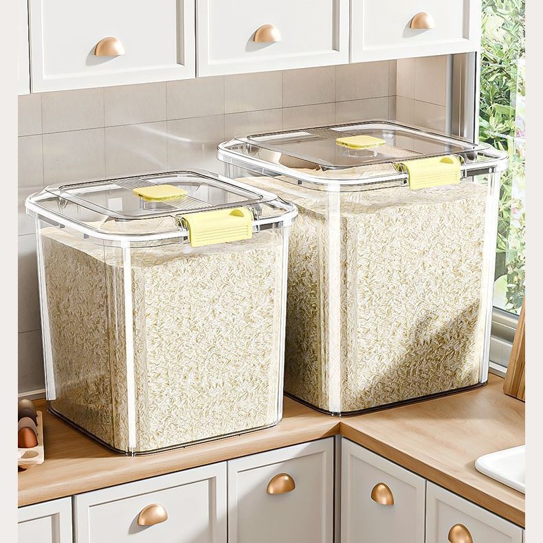 Kotak penyimpan beras tersegel, kotak penyimpan gandum plastik penyimpan tepung, anti serangga dan serangga grosir