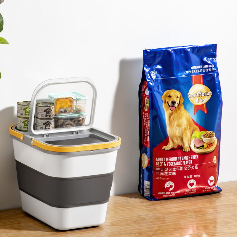 Barel Makanan Anjing Lipat Hewan Peliharaan Barel Beras Roda Ponsel Barel Penyimpanan Makanan Rumah Tangga Kotak Penyimpanan Tersegel dan Penyimpanan Gaya Jepang Anti Serangga