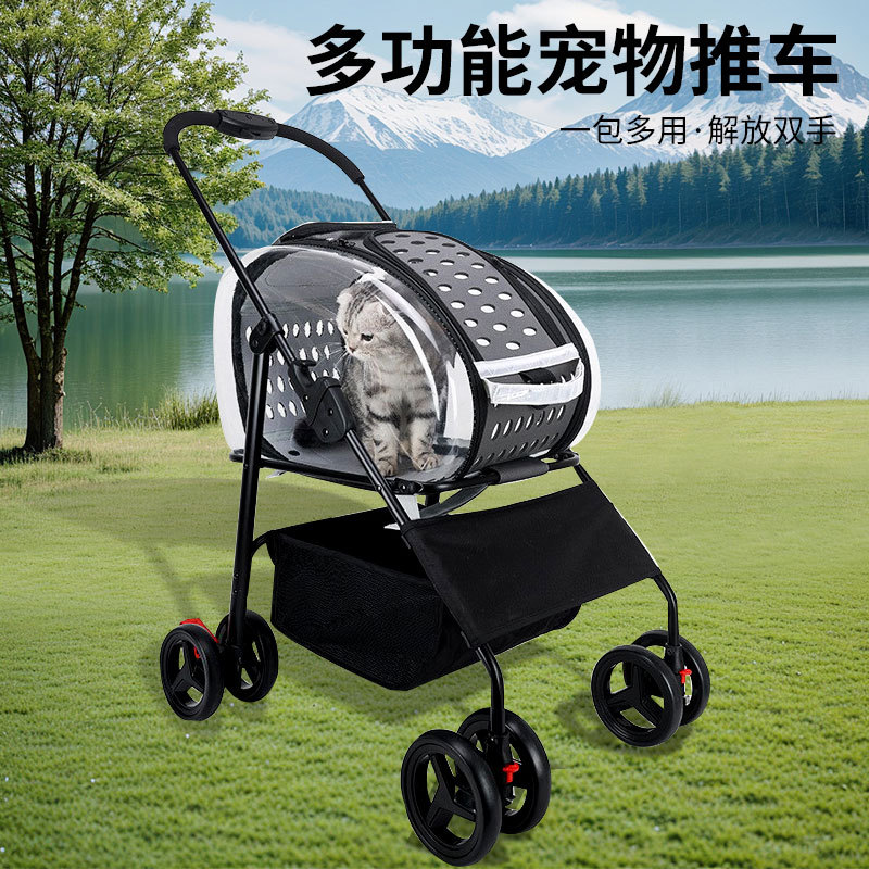 Gerobak Hewan Peliharaan Vientiane Empat Roda Mobil Anak Anjing Kecil Bisa Dilipat Ringan Khusus Anjing Berjalan Kucing Kecil dan Menengah Hewan Peliharaan di Luar