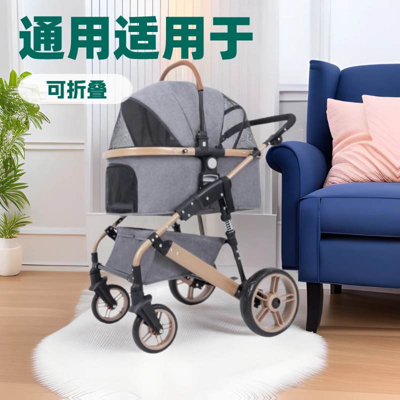 Gerobak Hewan Peliharaan Vientiane Empat Roda Mobil Anak Anjing Kecil Bisa Dilipat Ringan Khusus Anjing Berjalan Kucing Kecil dan Menengah Hewan Peliharaan di Luar