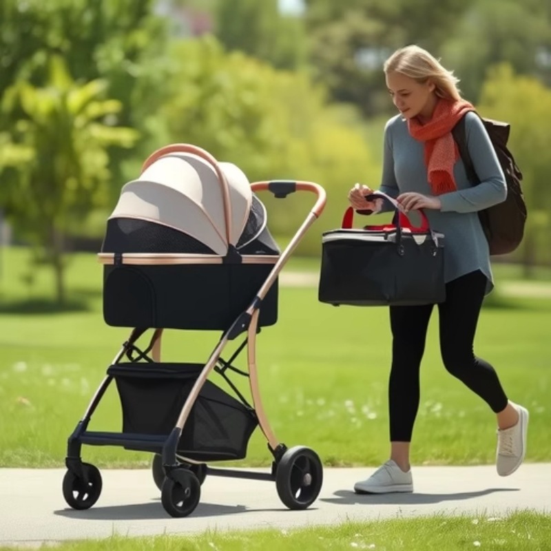 Troli Hewan Peliharaan Ringan Bisa Dilipat Anak Anjing Khusus untuk Anjing Berjalan Bayi Ukuran Sedang Kucing Perlengkapan Keluar