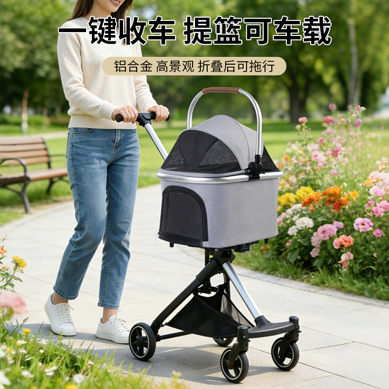 Satu Tombol Gravitasi Otomatis Kereta Dorong Hewan Peliharaan Keranjang Mobil Dorong Kucing Terpadu Kereta Dorong Luar Ruangan Hewan Peliharaan Berjalan Anjing Lintas Batas