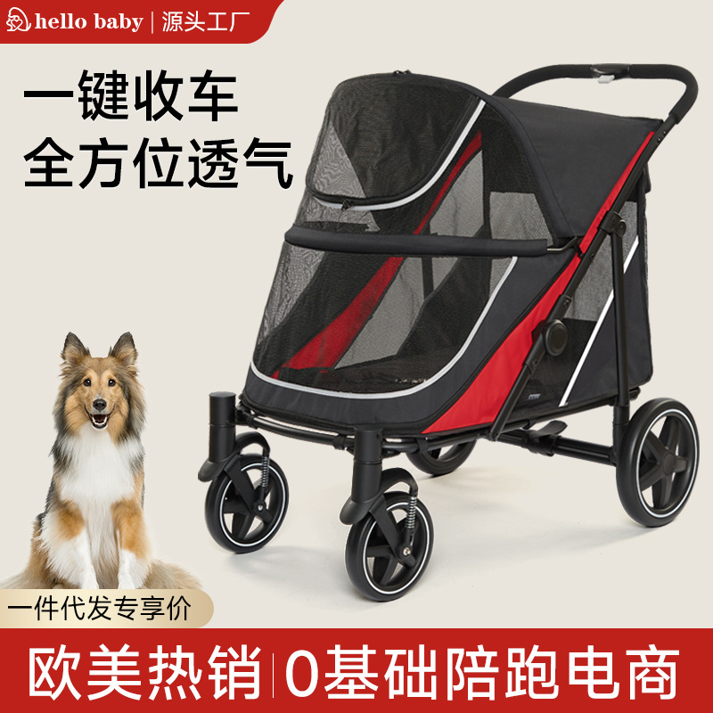 Kereta dorong hewan peliharaan Amazon all-in-one ringan lipat multi-kucing dan anjing untuk keluar rumah grosir lintas batas
