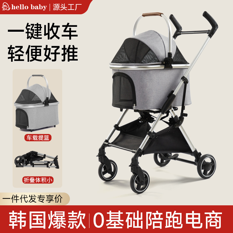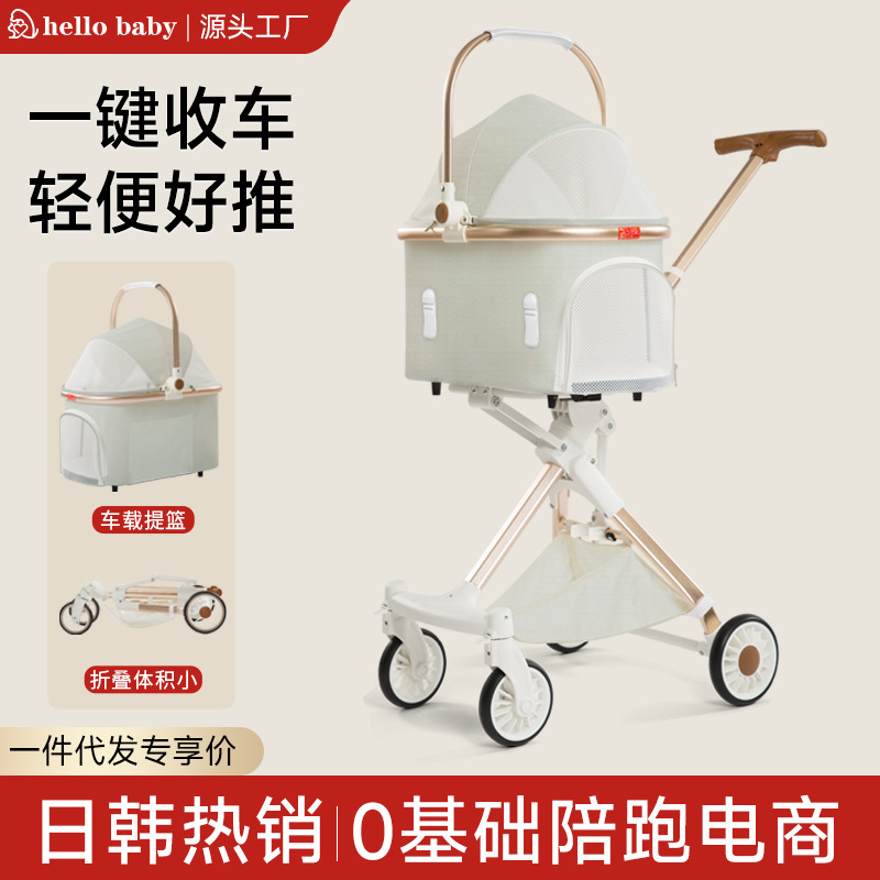 Hellobaby Jepang dan Korea penjualan laris kereta dorong hewan peliharaan lipat tas mobil hewan peliharaan pemisah Teddy kucing kereta bayi grosir