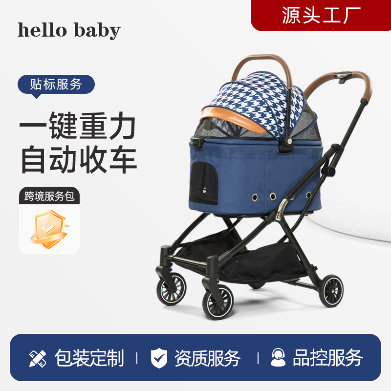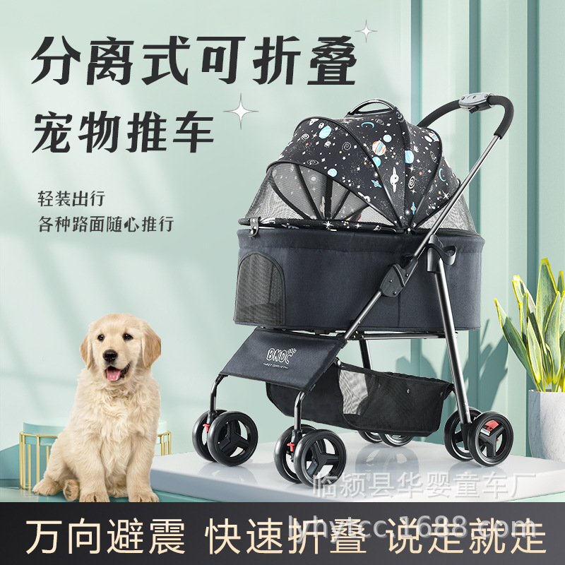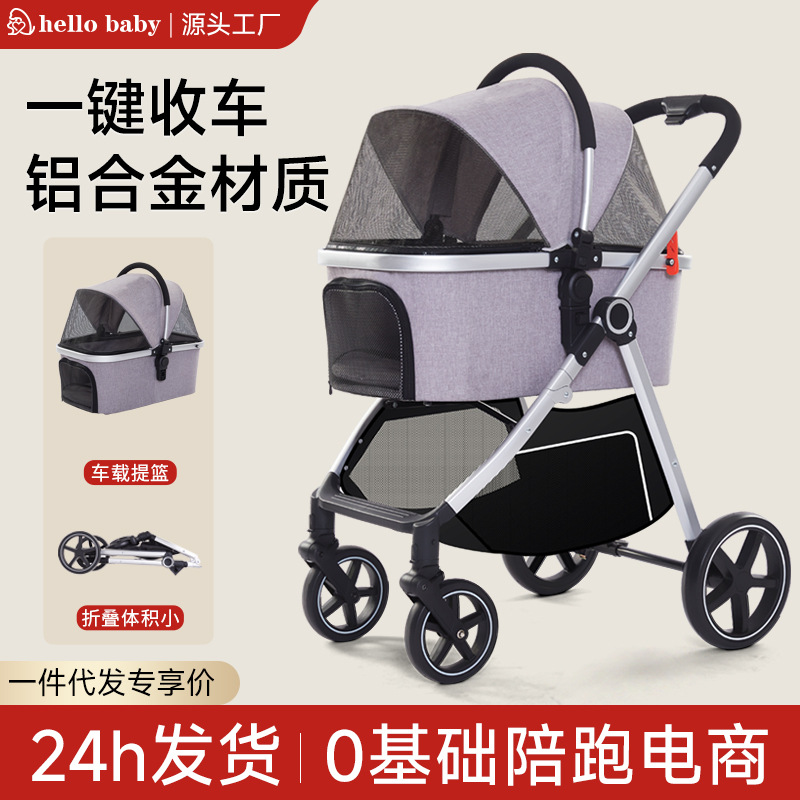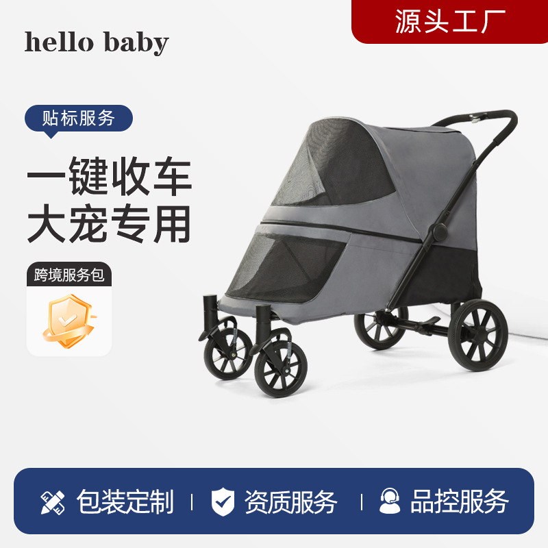 Cross-border grosir multi-fungsi sedang dan besar kereta dorong hewan peliharaan perjalanan luar ruangan besar berjalan anjing mobil portabel dilipat
