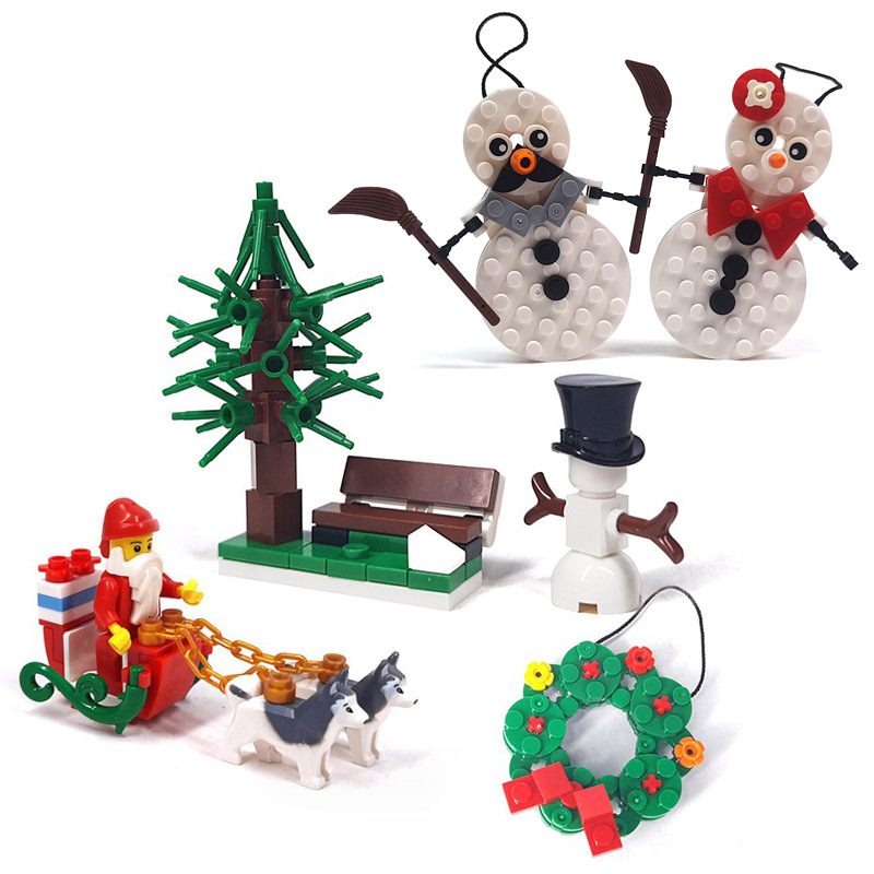 Velos mainan blok bangunan MOC partikel kecil perakitan Santa husky mobil kereta luncur Natal domestik kompatibel dengan